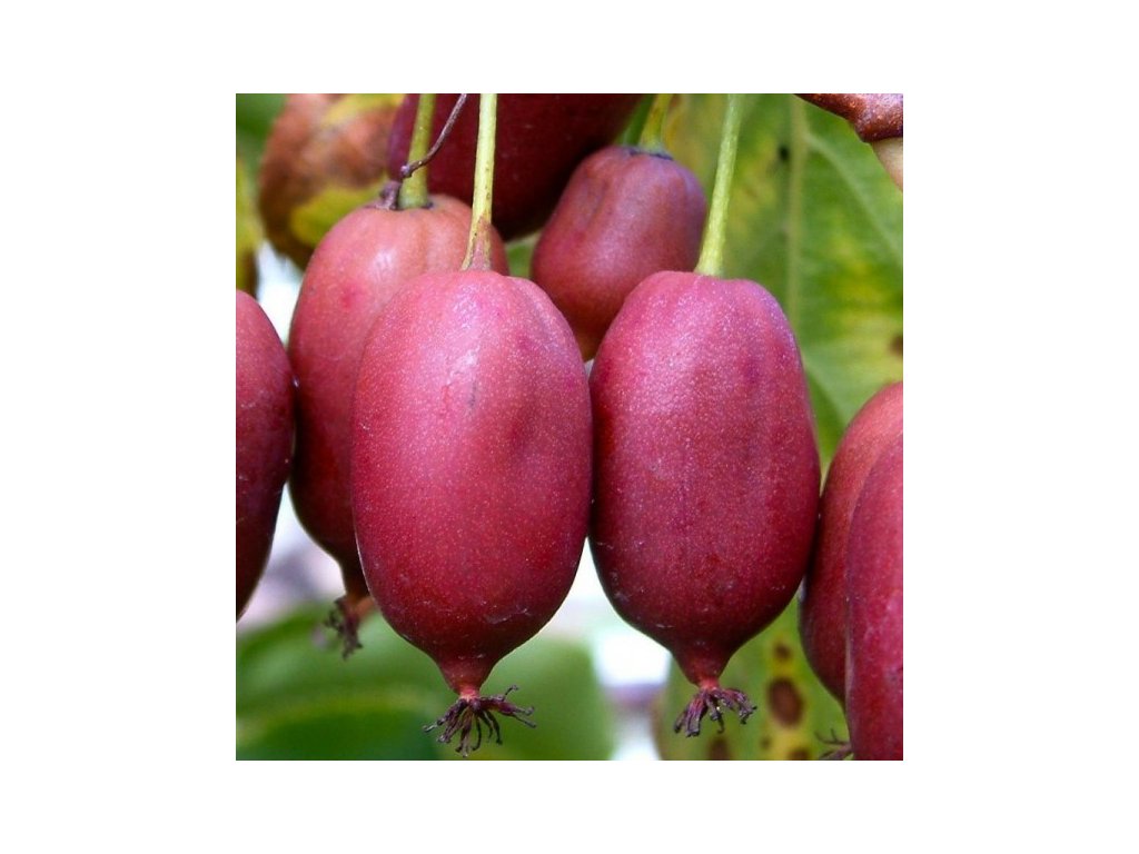 Kiwi Hardy Red je atraktívna samičia odroda mini kivi (Actinidia arguta), známa svojimi netradičnými, červeno sfarbenými plodmi. Táto odroda pochádza z USA a je cenená nielen pre svoju výbornú chuť, ale aj pre dekoratívny vzhľad plodov, ktoré sú jedinečné svojim červeným vnútrom aj červenkastým líčkom na šupke.Plody sú menšie, vajcovité, hladké a úplne bez chĺpkov. Majú sladkú, šťavnatú chuť s príjemnou vôňou a dozrievajú väčšinou v septembri až októbri. Výnosy sú veľmi dobré. Potrebuje pevnú oporu (napr. pergolu, plot alebo treláž) a môže dorásť do výšky 5–6 metrov. Vyžaduje slnečné a chránené stanovište, ideálne s priepustnou, humóznou a mierne kyslou pôdou. Mrazuvzdornosť je veľmi dobrá - obvykle do -25 ° C, pri dobrom zakorenení aj nižšie.Dodatočné parametre