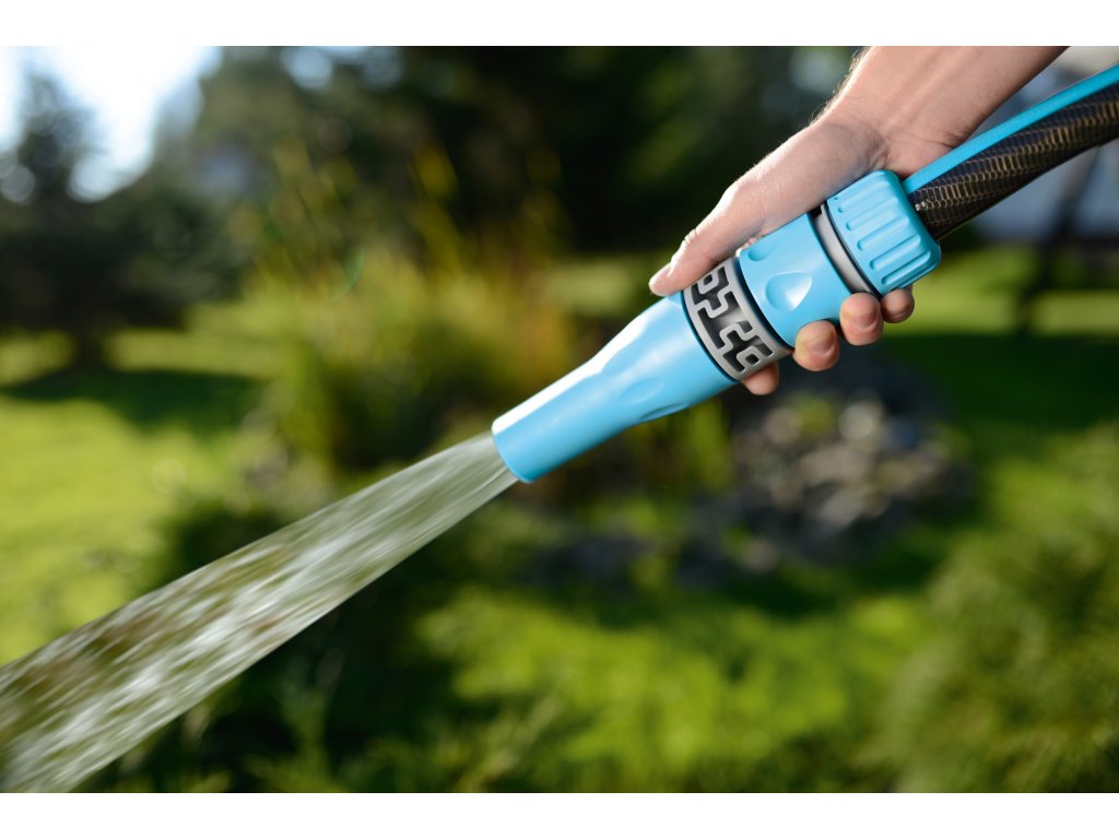 ručný postrekovač s postupnou reguláciou prietoku vody od silného prúdu po jemnú hmlu