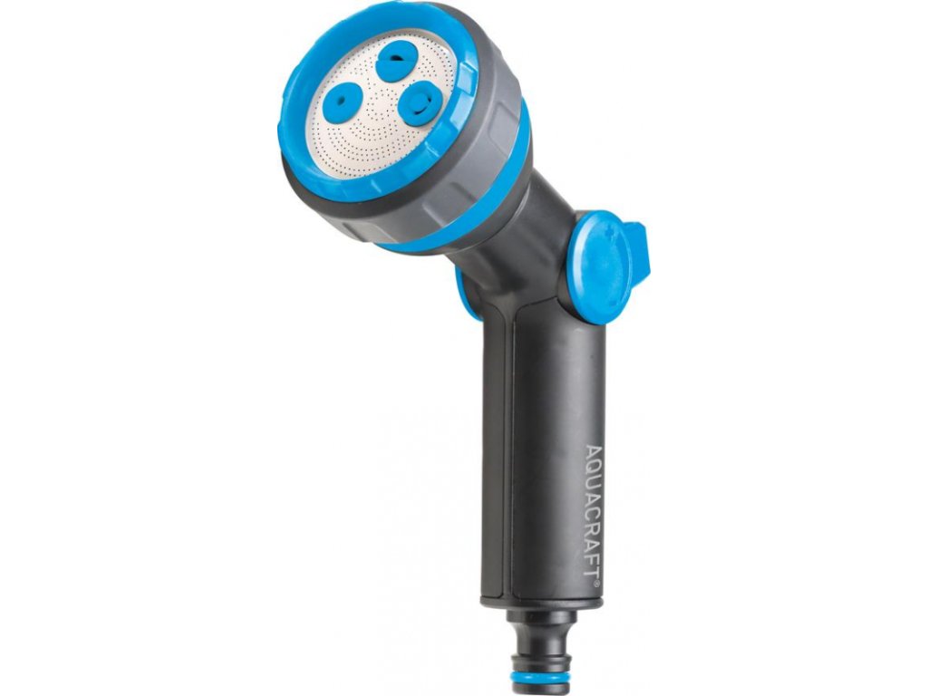 Striekacia pištoľ AQUACRAFT® 770331 je vyrobená z plastová konštrukcie, ktorá je vysoko odolná proti nárazom. Disponuje 4 úrovňami nastavenia postreku s protišmykovým gumovým okrajom pre ľahké uchopenie a ergonomickým uchopením pre extra komfortné a ľahké používanie. Nastaviteľná prietoková rýchlosť.