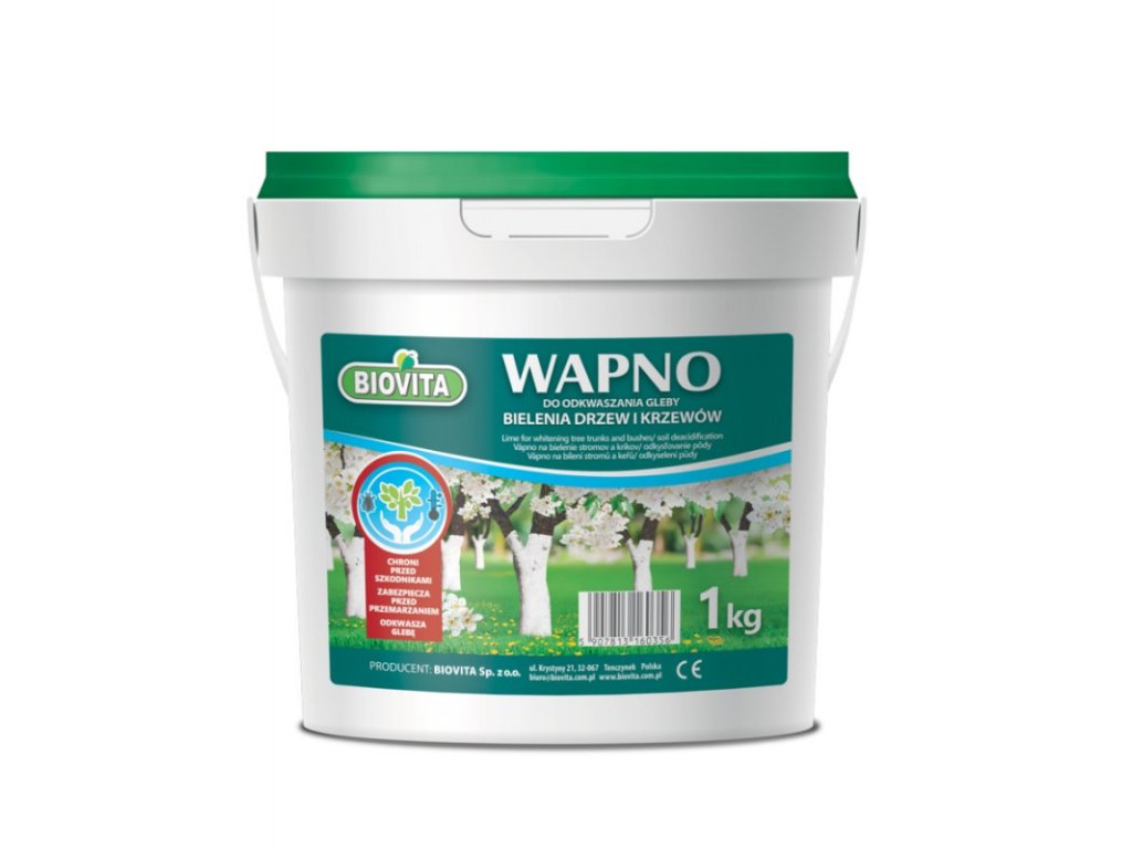 BIOVITA Vápno na stromy 1kg je určené na bielenie kmeňov a hrubších konárov ovocných aj okrasných stromov. Vápenný náter pomáha chrániť kôru pred mrazovými trhlinami a pred poškodením spôsobeným zimným a skorojarným slnkom, keď dochádza k výrazným teplotným výkyvom medzi dňom a nocou. Bielenie zároveň znižuje prehrievanie kmeňa na priamom slnku.