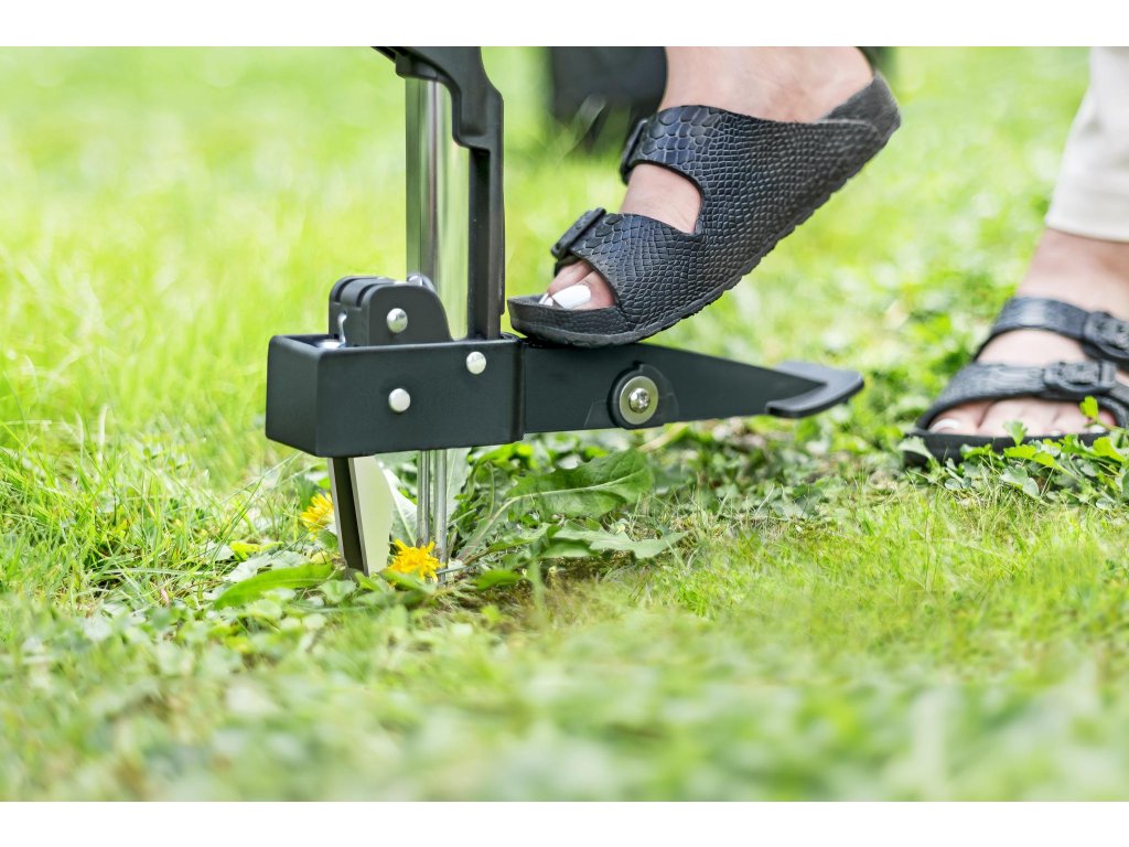 - hĺbkovo dosahujúce nerezové páky uchopia koreň zo štyroch strán a odstránia rastlinu spolu s dlhým koreňom