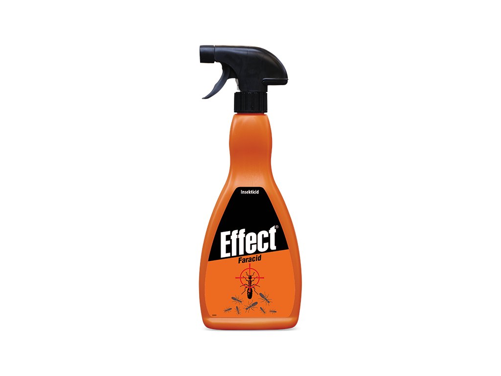Effect Faracid je špeciálny kontaktný insekticíd, ktorý svojím zložením dosahuje mimoriadne dlhotrvajúcu účinnosť (až 6 mesiacov) a umožňuje ničenie jednotlivého hmyzu aj jeho hniezd.