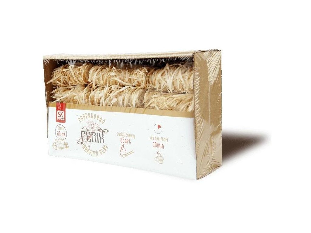 Ekologický typ podpaľovača vyrobený z našúpanej drevitej vlny, ktorá má dostatočnú podpaľovaciu účinnosť. Je trvácny, bezaromatický, avšak dlhšie trvá, kým sa rozhorí.