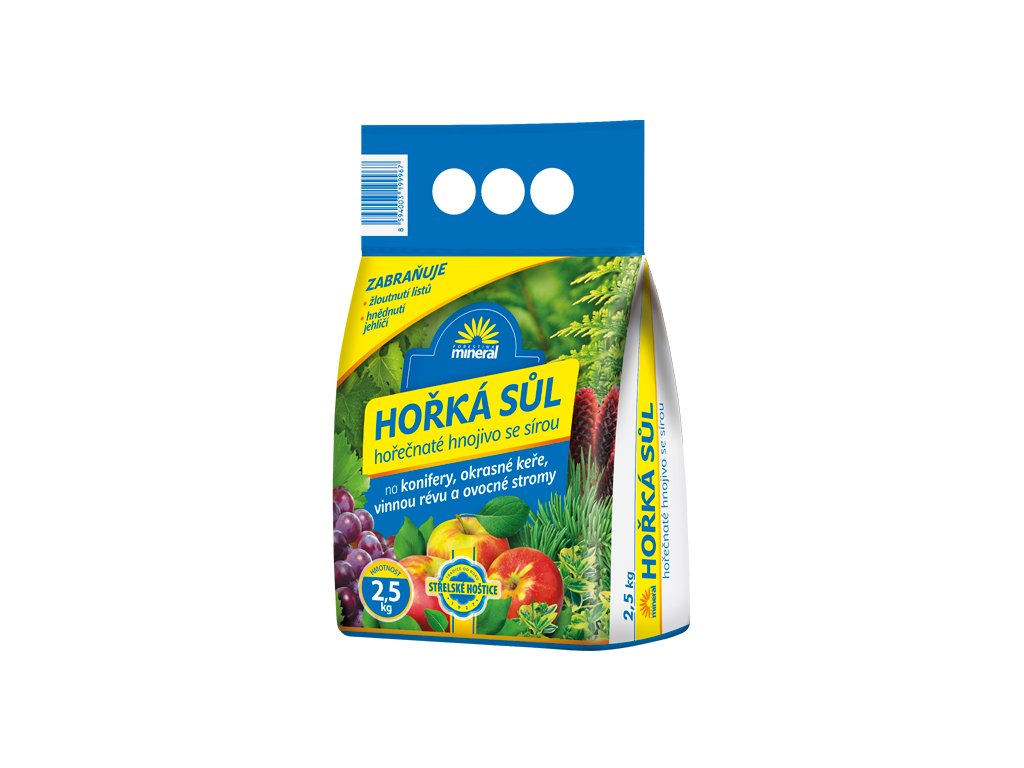 Horká soľ ( síran horečnatý ) je najvhodnejšie rýchlo pôsobiace a bez zbytkov rozpustné hnojivo , ktoré odstraňuje nedostatok horčíka - dôležitá živina všetkých záhradných plodín , tj. zeleniny , ovocia i okrasných rastlín . Pri nedostatku horčíka v pôde sú rastliny postihnuté tzv. chlorózou , ktorá sa prejavuje žltnutím listov medzi žilnatinou ( žilky zostávajú zelené ) a hnednutím ihličia u ihličnanov . V dôsledku toho sa rastliny nevyvíjajú správne , výnosy sú malé , akosť plodov nízka .Dodatočné parametre
