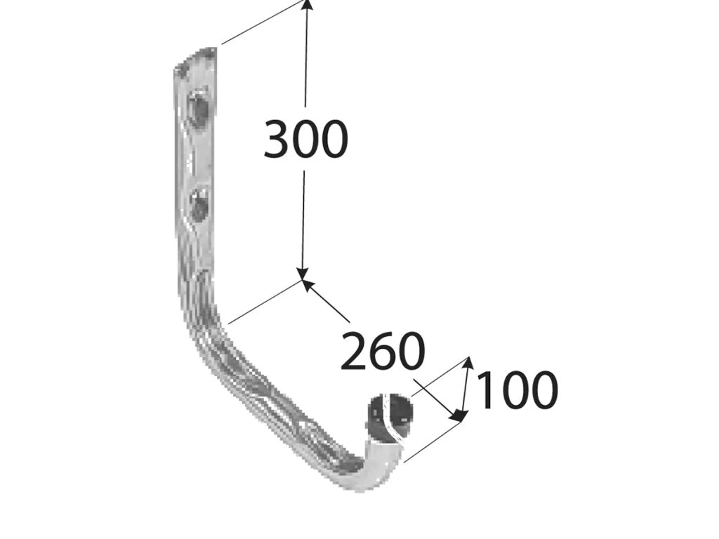 Vďaka rozmeru 300x260x100 mm je vhodný aj tam, kde potrebujete väčší odstup od steny a stabilné uloženie. Oceľové prevedenie s pozinkovaným povrchom je určené na bežné použitie v interiéri aj krytom exteriéri.