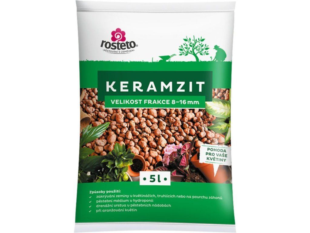 Keramzit 8-16 mm 5 l je expandovaný ílový granulát s hladkým povrchom určený na praktické aj dekoračné použitie pri pestovaní rastlín. Využijete ho na zakrytie povrchu substrátu, ako drenážnu vrstvu do kvetináčov alebo ako pestovateľské médium pri hydropónii.