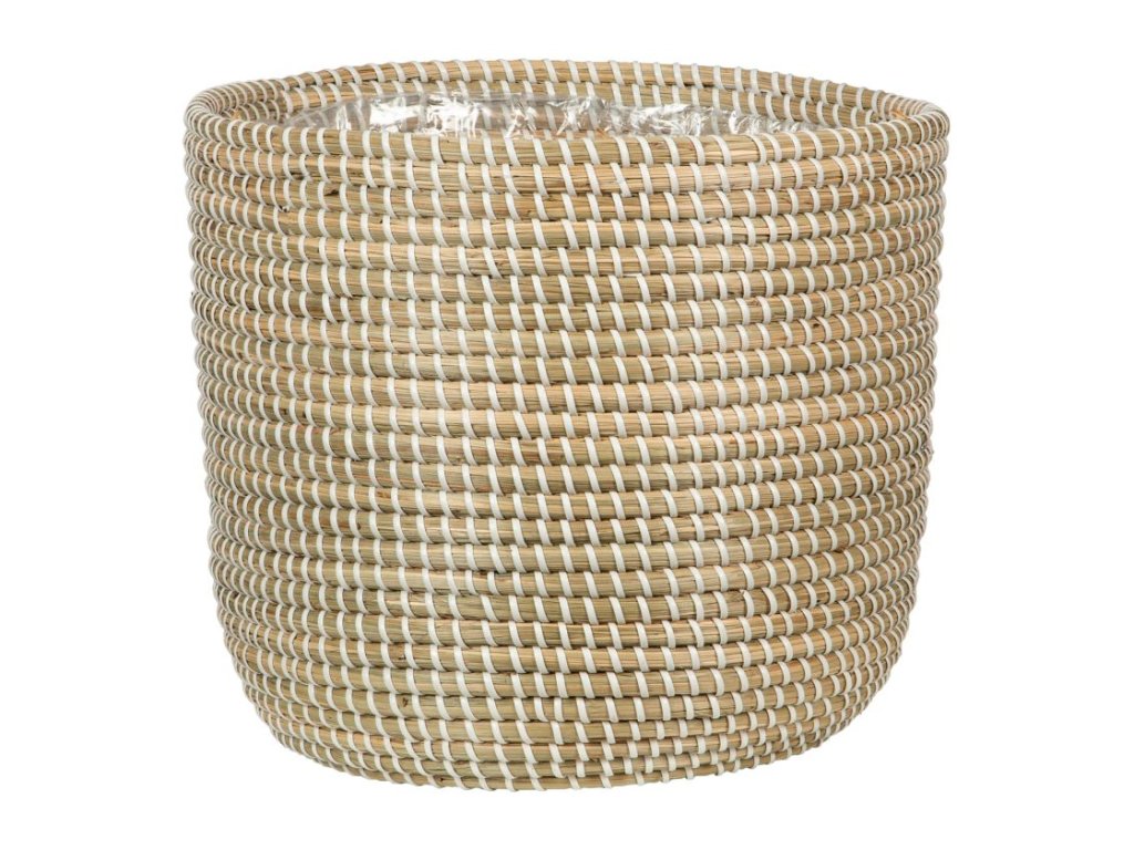 Košík z morskej trávy 513 22cm biely je dekoratívny obal na kvetináč do interiéru od značky Scheurich. Je ručne pletený z morskej trávy opletený plastovým lemom v bielom prevedení a vo vnútri má vodotesnú fóliovú vložku, ktorá chráni košík pred presiaknutím vody a uľahčuje používanie s rastlinami.