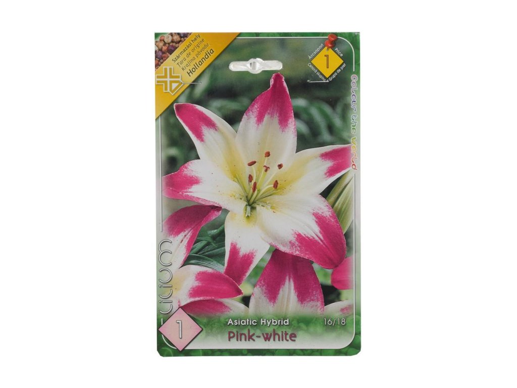 Lilium Asiatic hybrid Pink-White 1ks (pôvod Holandsko) je cibuľka na výsadbu ázijskej ľalie. Nejde o rastlinu v črepníku, ale o sadbový materiál, z ktorého po výsadbe vyrastie ľalia s dekoratívnymi ružovo-bielymi kvetmi. Ázijské ľalie sú obľúbené pre spoľahlivé kvitnutie, pevné stonky a všestranné využitie v záhone aj ako rezané kvety.