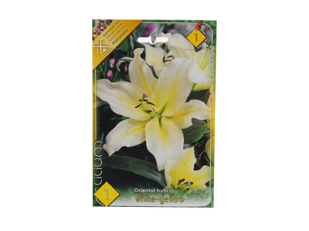 Lilium Oriental hybrid White Yellow 1ks (pôvod Holandsko) je cibuľka na výsadbu orientálnej ľalie. Nejde o rastlinu v črepníku, ale o sadbový materiál, z ktorého po výsadbe vyrastie ľalia s veľkými, dekoratívnymi bielo-žltými kvetmi. Orientálne ľalie sú obľúbené aj pre výraznejšiu vôňu a veľmi reprezentatívny vzhľad v záhone aj vo váze.