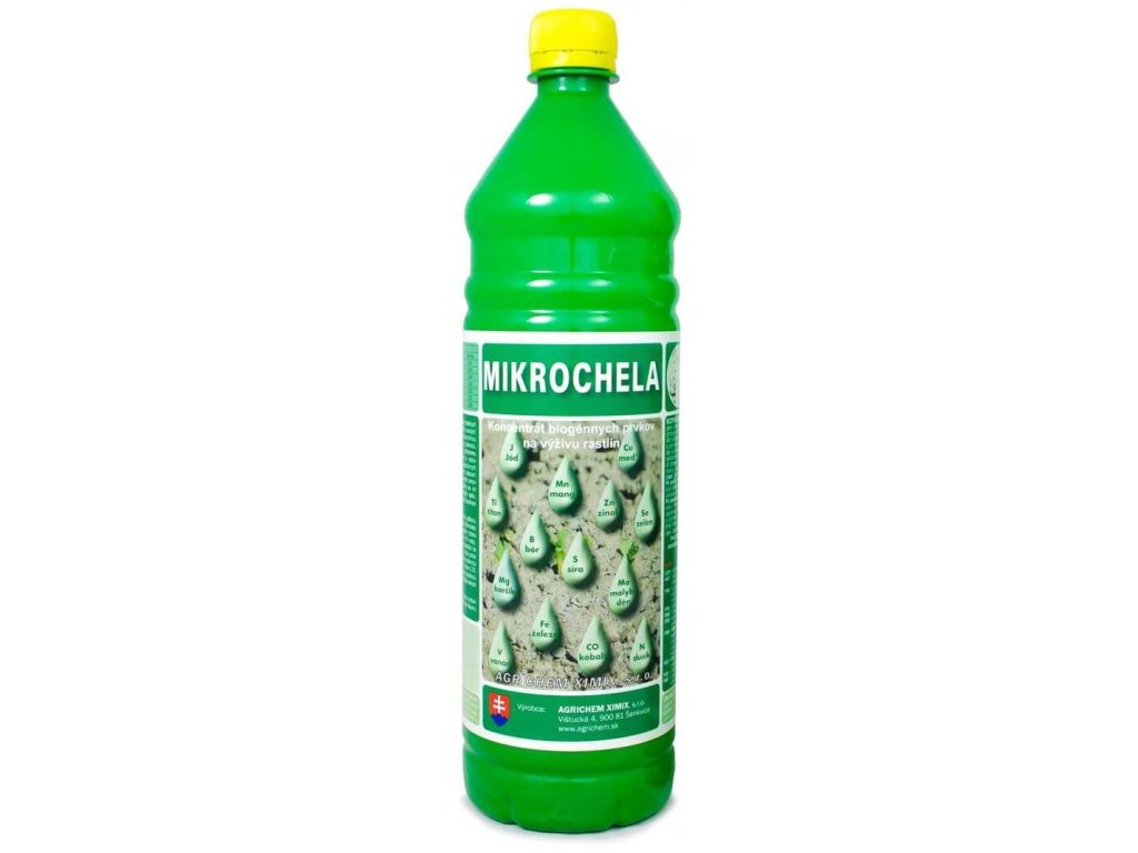Použitie: Kvapalný koncentrát Mikrochela je účinným zdrojom stopových rastlinných živín vhodným na doplnkovú výživu zeleniny, ovocných drevín a dekoračných rastlín a to formou foliárnej aplikácie i koreňovej zálievky. Komplexná – chelátová forma prvkov obsiahnutých v prípravku vytvára predpoklady pre ich rýchly a účinný vstup do systému ošetrovaných rastlín. Mikrochela zvyšuje odolnosť rastlín proti škodlivým činiteľom a zlepšuje celkový stav rastlín. Mikrochela je účinným zdrojom stopových rastlinných živín počas vegetácie, a to formou mimokoreňovej a listovej aplikácie, ako aj zálievkou, ďalej morenie semien pred ich výsevom, k urýchlenému vyzrievaniu kompostu, na morenie vrúbľov a rezkov v súvislosti s množením rastlín a tiež ako prísada do živých roztokov pri bezpôdnom a hydroponickom pestovaní rastlín. Mikrochela je vhodná aj pre doplnkovú výživu veľkoplošne pestovaných kultúr.