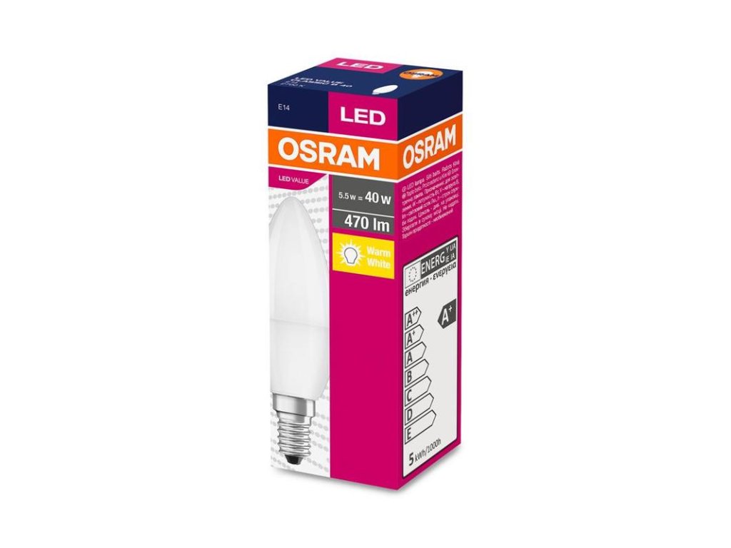 OSRAM LED Žiarovka E14 5,7W sviečka teplá biela
