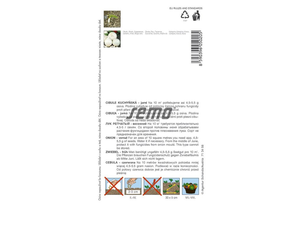výnosná pozdní odrůda bílé cibule s jasně bílo-stříbřitou barvou a to jak slupky, tak i uvnitř. Udržuje si velmi dobře jednotný vřetenovitý tvar. Při krájení zůstává cibule kompaktní a nerozpadá se. Je určena pro přímou spotřebu, krátkodobé skladování i průmyslové zpracování. Je výrazně tolerantní k plísni cibulové.Dodatočné parametre