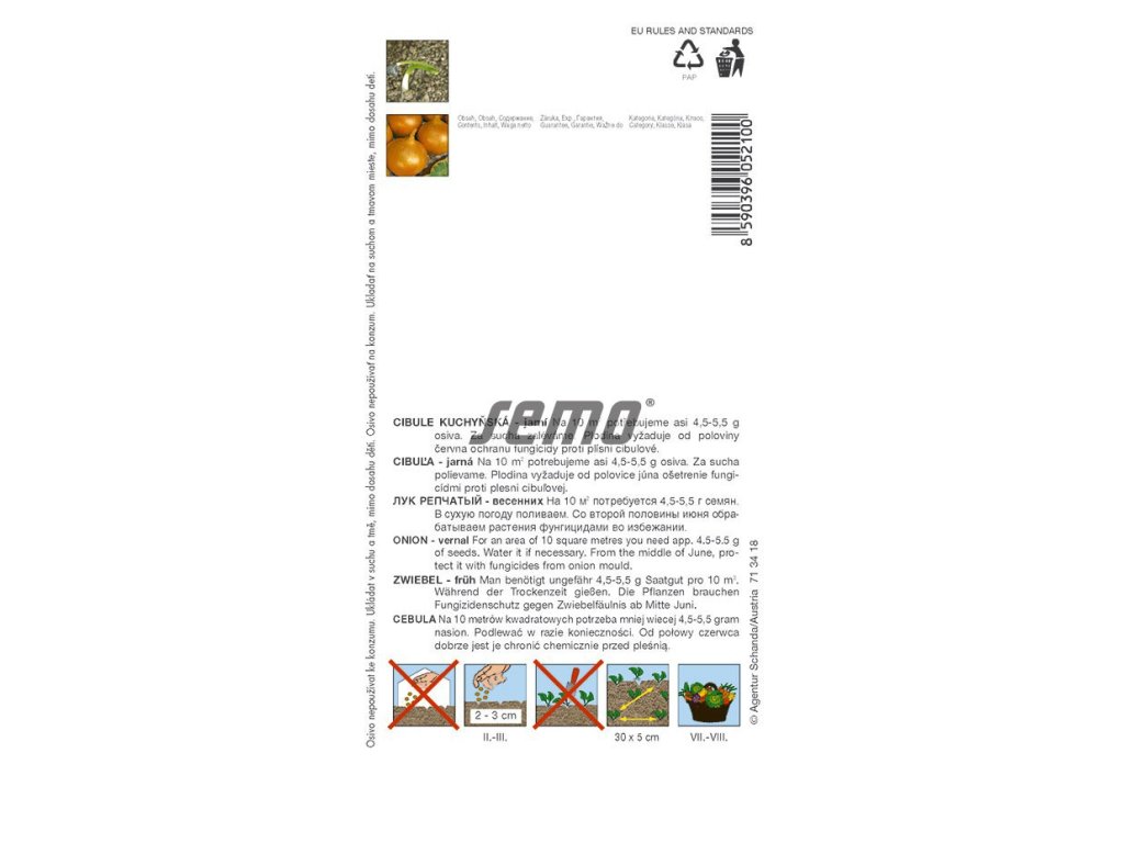 Poloraná,výnosná odrůda. Kulovitá, žlutohnědá, středně velká cibule je obalena pevnými, dobře přiléhajícími suknicemi. Krček je středně silný, dobře zatahuje. Je určena převážně pro přímé jarní výsevy. Dužnina je pevná, bílá až nažloutlá, příjemné, mírně palčivé chuti. Vyniká stabilním výnosem a přizpůsobivostí. Má dobrý zdravotní stav a je výborně skladovatelná. Stejnoměrně vyzrává, do sklizně dochází v polovině srpna. Vegetační doba 122 dní, průměrná hmotnost cibule 55 g.Dodatočné parametre
