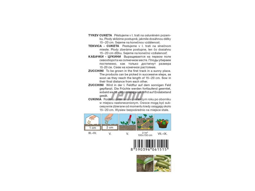 Rovnoměrně plodící cuketa s kratšími (15 až 20 cm) válcovitými, tupě zakončenými plody bílo zelené barvy s jemnou síťovanou slupkou. Je raná, velmi výnosná a určená zejména pro sklizeň mladých lahůdkových „baby“ plodů, které jsou velice jemné, zvláště vhodné na grilování a pečení.Dodatočné parametre