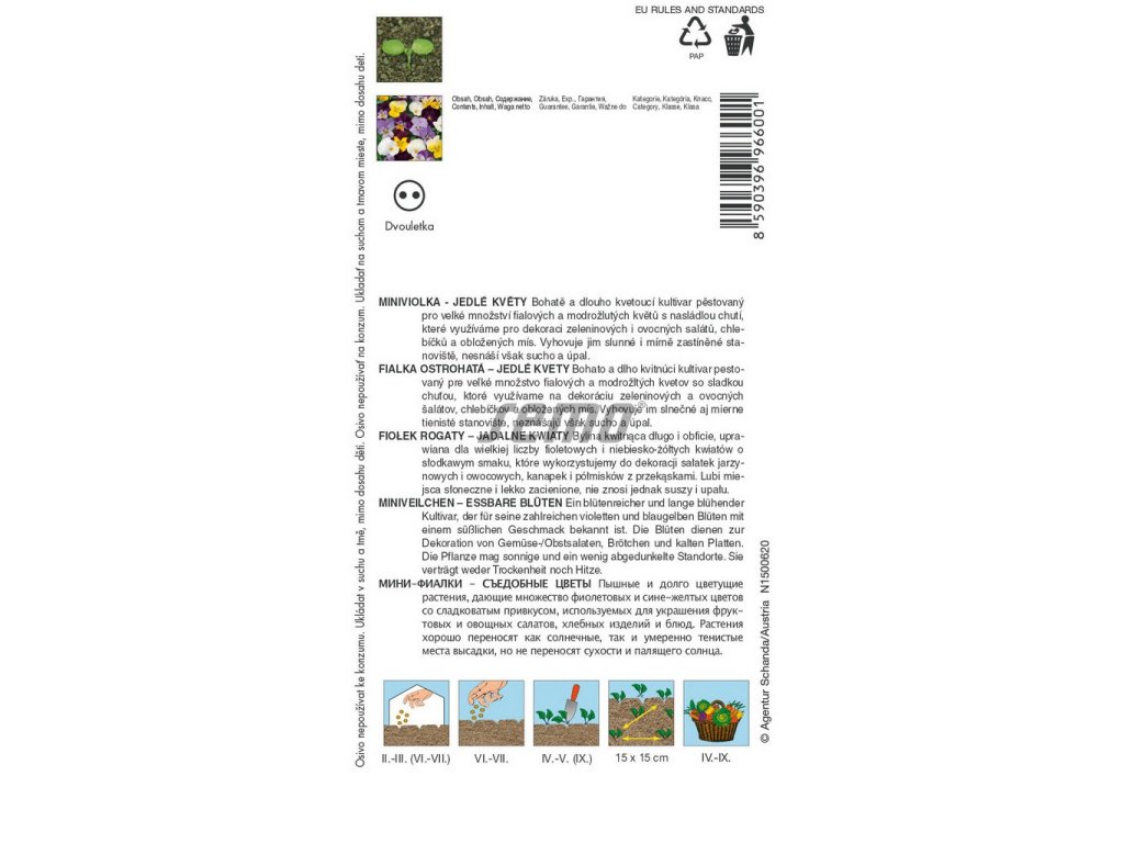 Směs fialových a modrožlutých barev květů, kterým jsou přisuzovány afrodiziakální účinky, mají nasládlou chuť a oku lahodící vzhled.Dodatočné parametre
