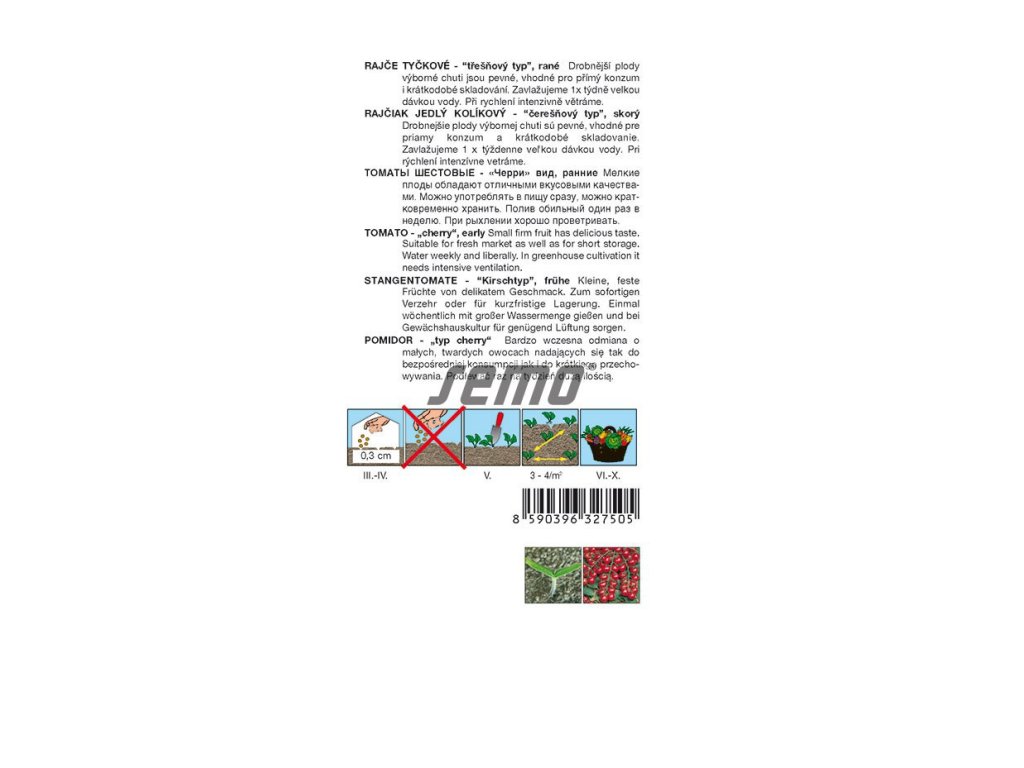SEMO Rajčiak MINI cherry 3275 je skorá tyčková odroda cherry rajčiaka, ktorá produkuje kompaktné strapce malých, šťavnatých plodov vhodných na priame stolovanie aj do šalátov.