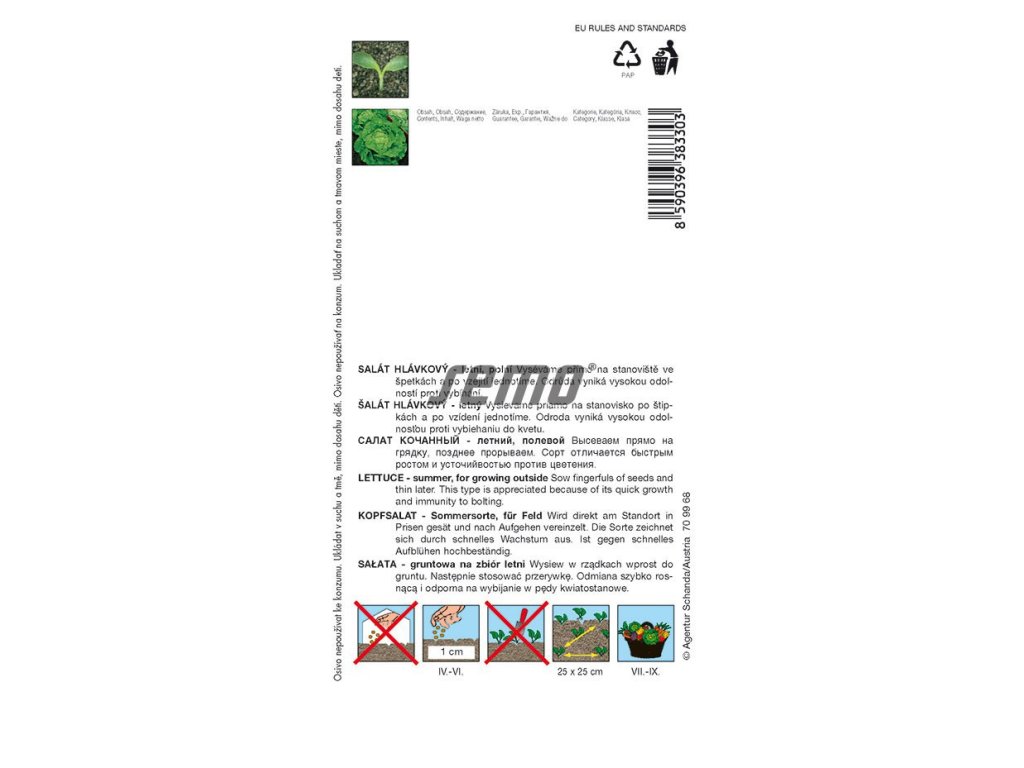 Letní salát s velkými, jemnými, dobře uzavřenými hlávkami příjemné chuti a s vysokou odolností vůči vybíhání. Má dobrý zdravotní stav, je odolný k plísni salátové a k virové mozaice salátu. Lze jej vysévat od března do konce června. Vegetační doba je 71 dnů.Dodatočné parametre