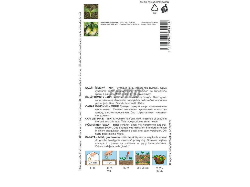 Mini odrůda římského salátu, je křehký jako ledový salát a sladký jako klasický hlávkový, je vysoce odolný vůči chorobám, můžeme vysévat každé 3 týdny.