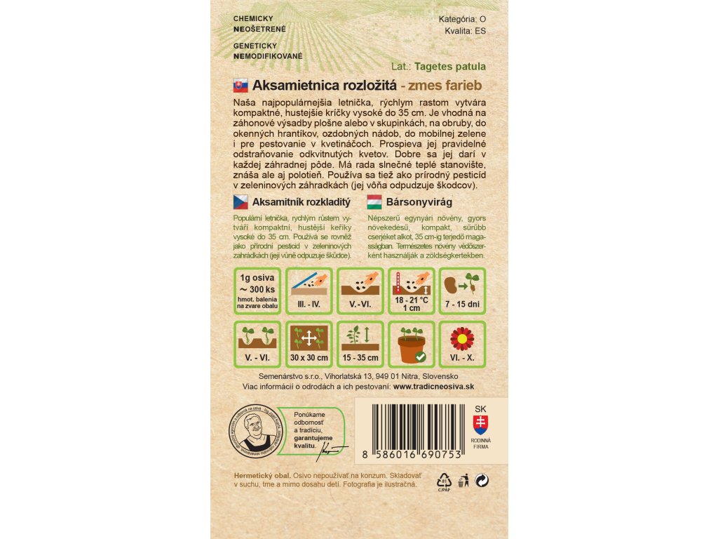 TRADIČNÉ OSIVÁ Aksamietnica rozložitá zmes farieb 1g