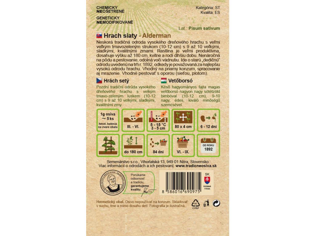 TRADIČNÉ OSIVÁ Hrach siaty ALDERMAN 20g