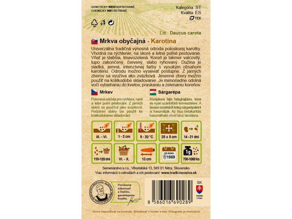 TRADIČNÉ OSIVÁ Mrkva poloskorá KAROTINA 5g