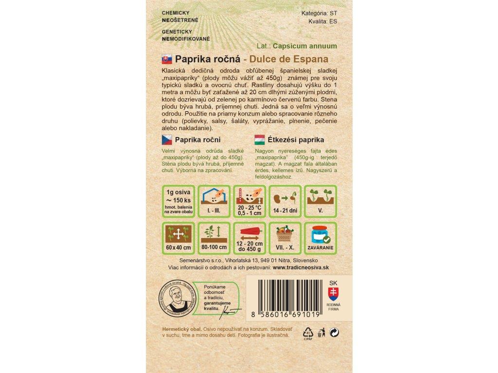 TRADIČNÉ OSIVÁ Paprika ročná Dulce de Espana 0,7g