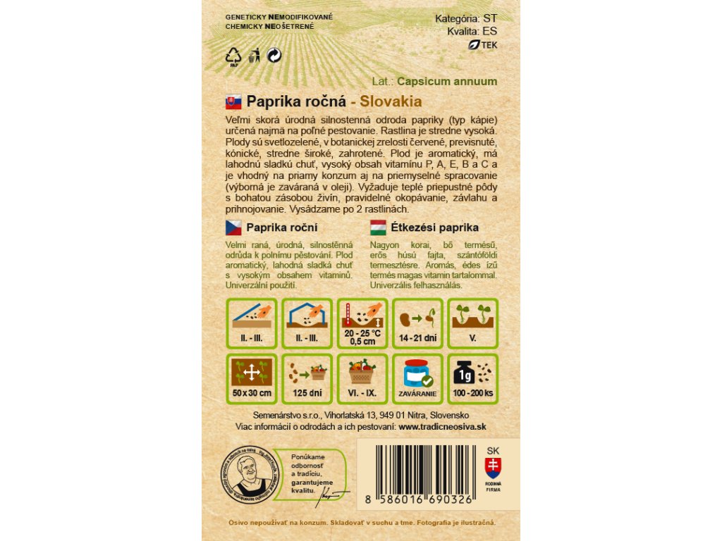 TRADIČNÉ OSIVÁ Paprika ročná SLOVAKIA 0,7g