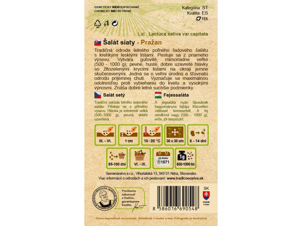 TRADIČNÉ OSIVÁ Šalát ľadový letný PRAŽAN 0,5g
