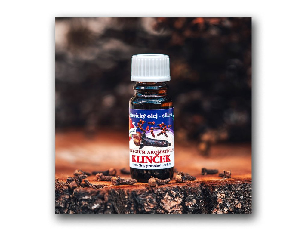 Éterický olej (silica) Klinček má výraznú, teplú korenistú vôňu so sladkastým podtónom, ktorá okamžite zútulní priestor. V aromaterapii sa používa najmä vtedy, keď chcete vytvoriť teplú atmosféru, podporiť pocit komfortu a dodať zmesiam korenistú hĺbku. Pre svoju intenzitu sa najčastejšie používa v menšom množstve ako doplnok do zmesí.