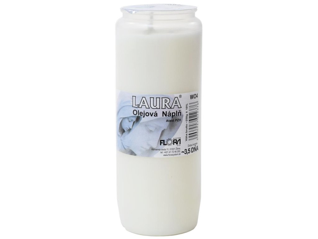 WO4 olejová náplň LAURA 250 g je náplň do kahancov a náhrobných svietidiel určená na stabilné horenie pri pietnom použití. Olejové náplne sú vhodnou voľbou najmä v chladnejších dňoch, keď sa vyžaduje spoľahlivé horenie aj pri nižších teplotách.